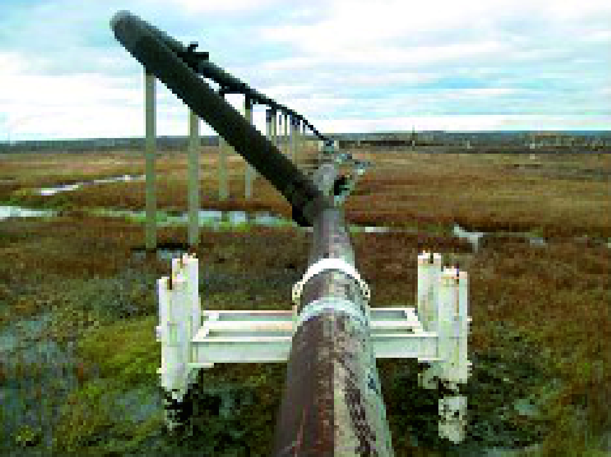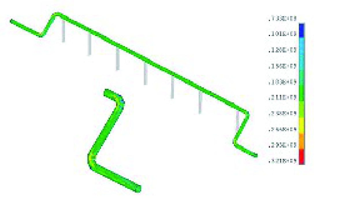 Распределение эквивалентных напряжений в газопроводе в рабочем состоянии МПа